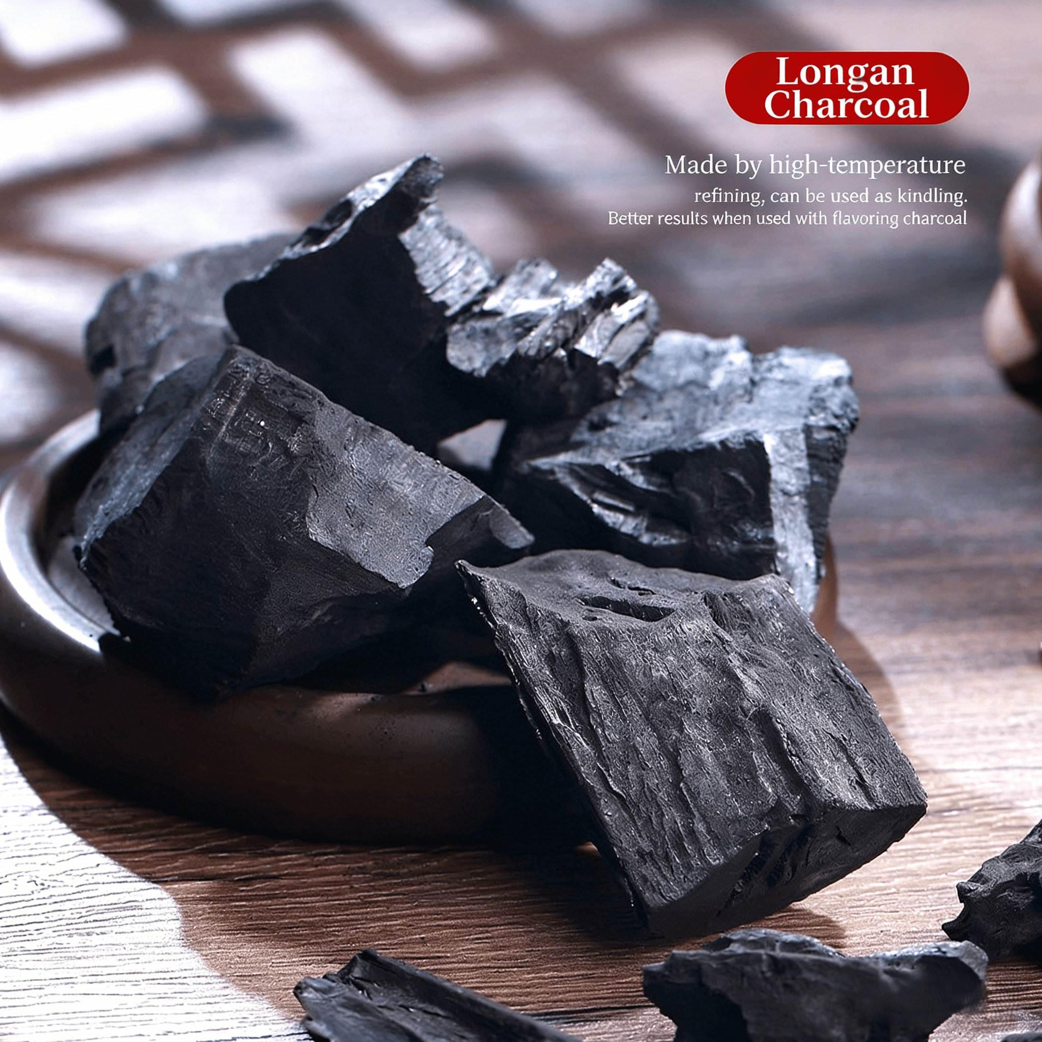 Variants: Longan charcoal, Olive charcoal, Walnut charcoal, Date seed charcoal, Black olive charcoal
